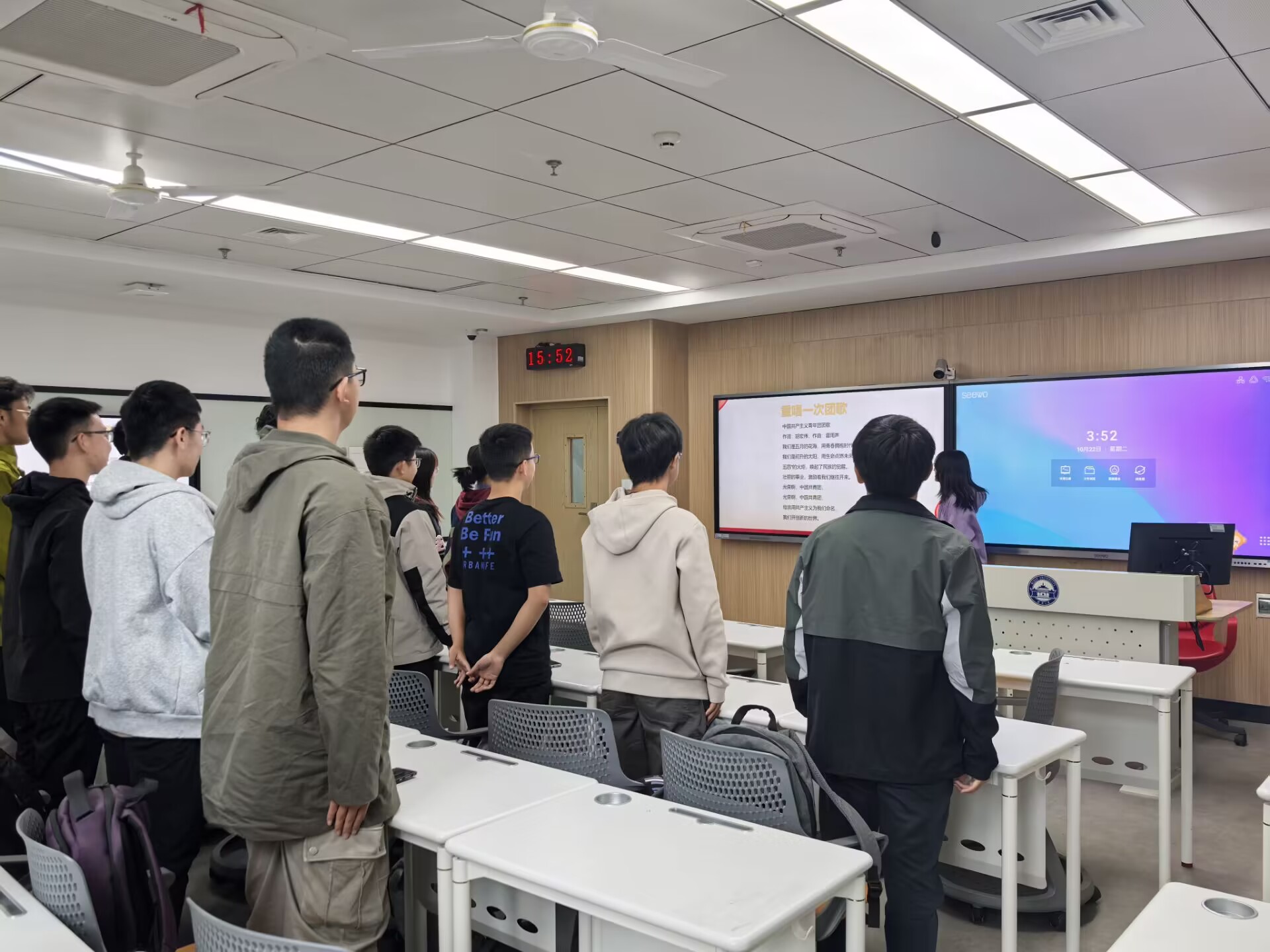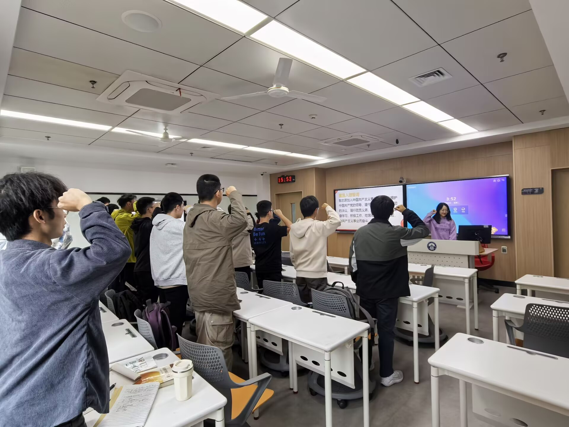 在熊欣瑶的带领下,团员青年们重温了入团誓词,共同唱响了中国共产主义青年团团歌,同时学习了美女直播 校歌。通过这一环节,团员青年们更加深刻地感受到了集体的力量和归属感,增强了团支部凝聚力和向心力。