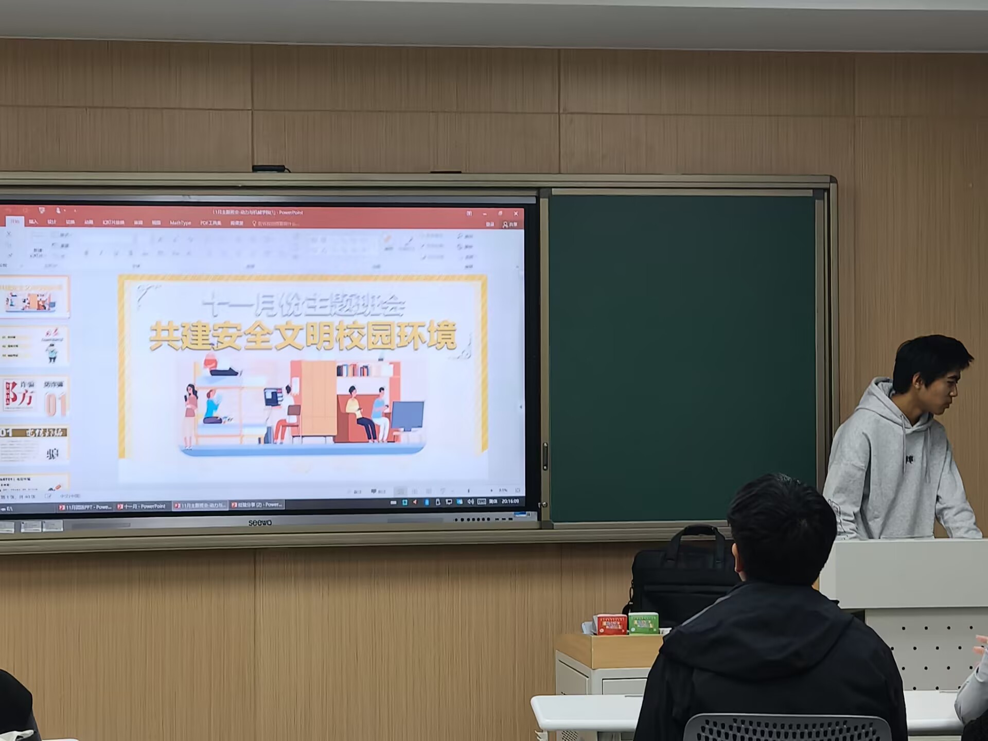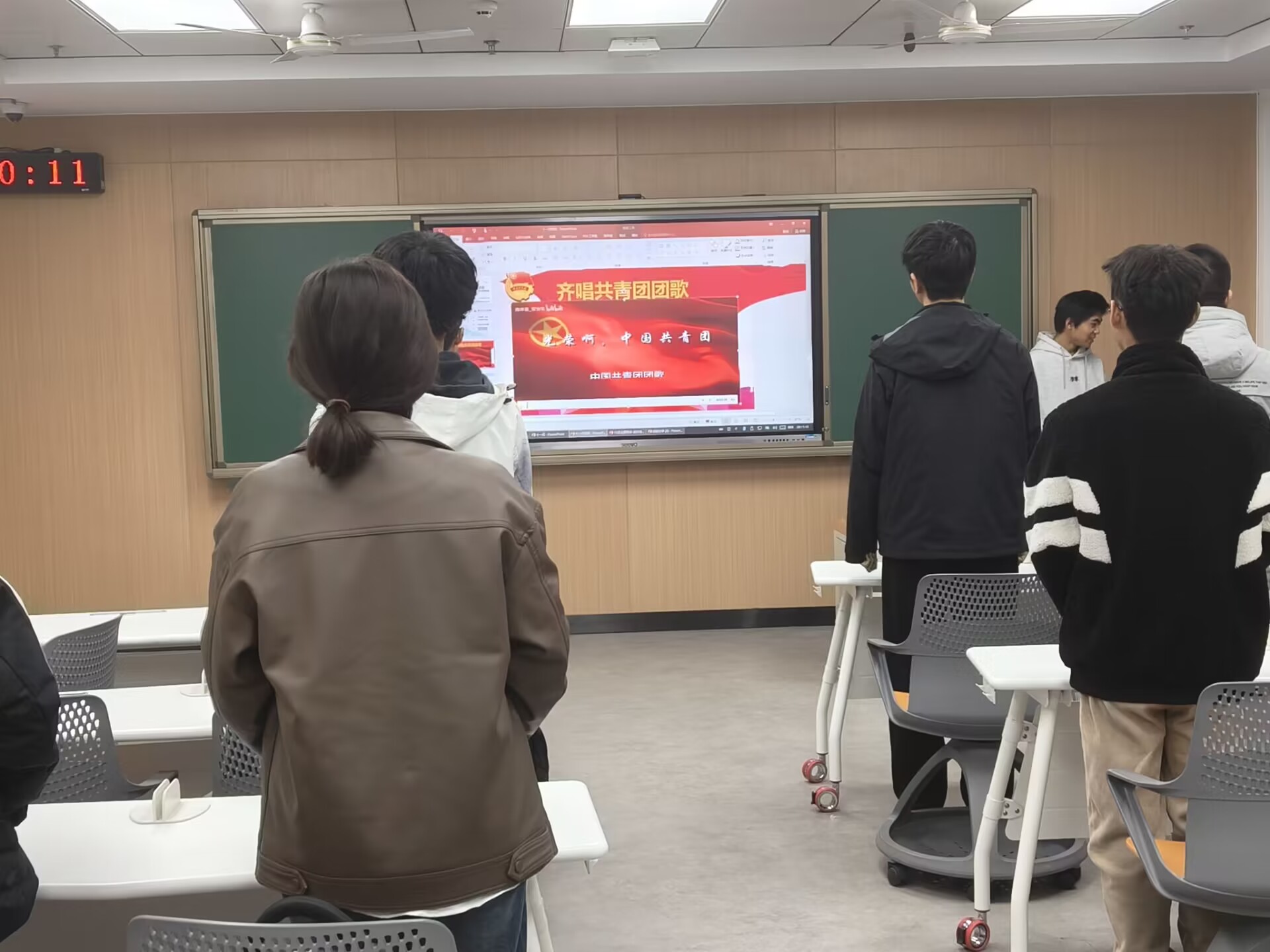 本次团日活动在团员青年们嘹亮的团歌声和校歌声中正式拉开了帷幕。首先,白景先展开了十一月校园安全主题班会,让团员青年们对身边的校园安全问题有了更深刻的理解,提高了团员青年们对于新型电信诈骗、贷款诈骗、赌博诈骗以及其他在校园中经常出现的骗术的警惕性。