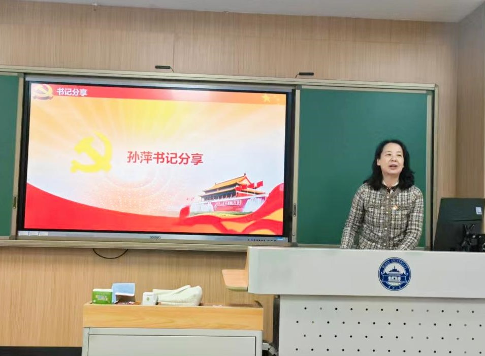 最后,孙萍书记总结发言。孙书记对支部以“深入学习贯彻习近平总书记2025年新年贺词”为主题开展主题党日活动表示了肯定。孙书记指出,习总书记的新年贺词不仅是对过去一年的总结,更为新一年的奋斗提供了思想指引和精神动力。习总书记强调的科技自立自强目标,与我们高校的使命高度契合。孙书记强调,学校第十次党员代表大会总结了学校党的全面领导开创新局面、学科建设水平跃上新台阶、师资队伍建设迈出新步伐、拔尖创新人才培养展现新作为、科技创新实现新突破等十个“新”,提出了学校未来发展“两步走”战略安排和“六个一流”发展目标,清晰指明了前进路径;新的一年,我们一方面要继续大力提升科研水平,另一方面还要持续加强思政教育,通过课堂和实践相结合,让学生真正成为担当民族复兴大任的时代新人。