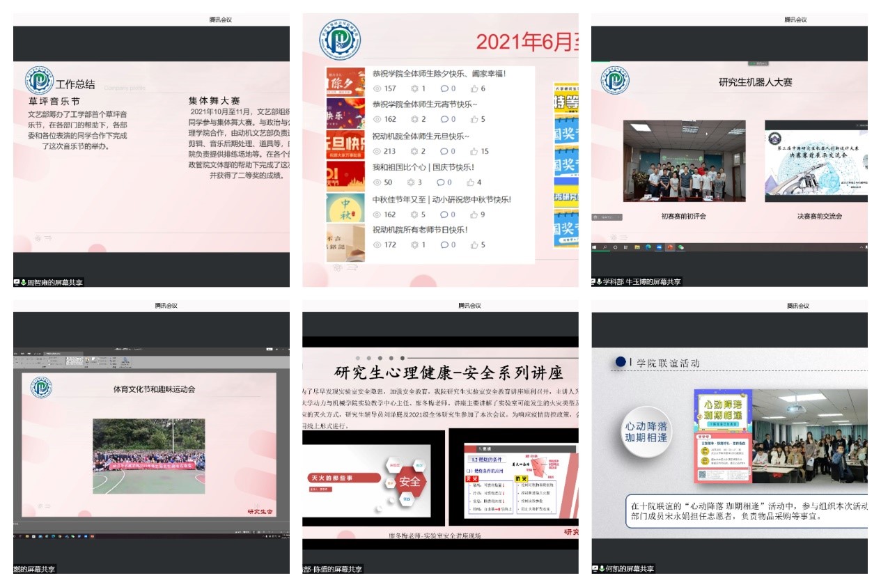 随后,研究生会各部门按照秘书部、宣传部、学术科技部、文艺部、体育部、心理与安全权益部的顺序依次开展述职。各部门负责人从工作成果、部门建设、不足与反思等方面,认真详实地向大家进行了汇报。