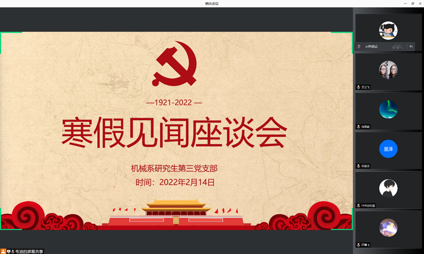 本网讯(通讯员:柳无双 编辑:于昊楠 审核:刘泽庭)根据校研工部《关于做好2022年寒假期间研究生安全教育管理工作的通知》文件精神,为准确及时了解学生思想,把握学生动态,交流假期见闻和感受,更有针对性地做好新学期思想政治工作,美女直播 各研究生党支部通过线上或线下会议等多种形式开展了寒假见闻座谈会。