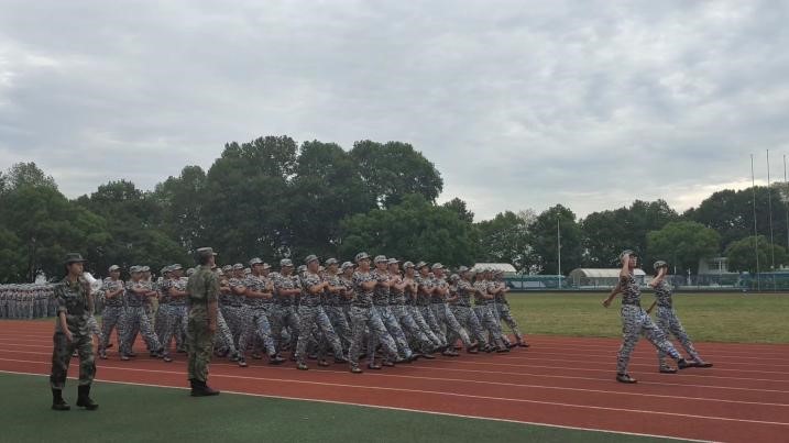 离别终有时,当教官们列队集合,踏着整齐的步伐离开时,同学们用热烈的掌声,目送教官离场。