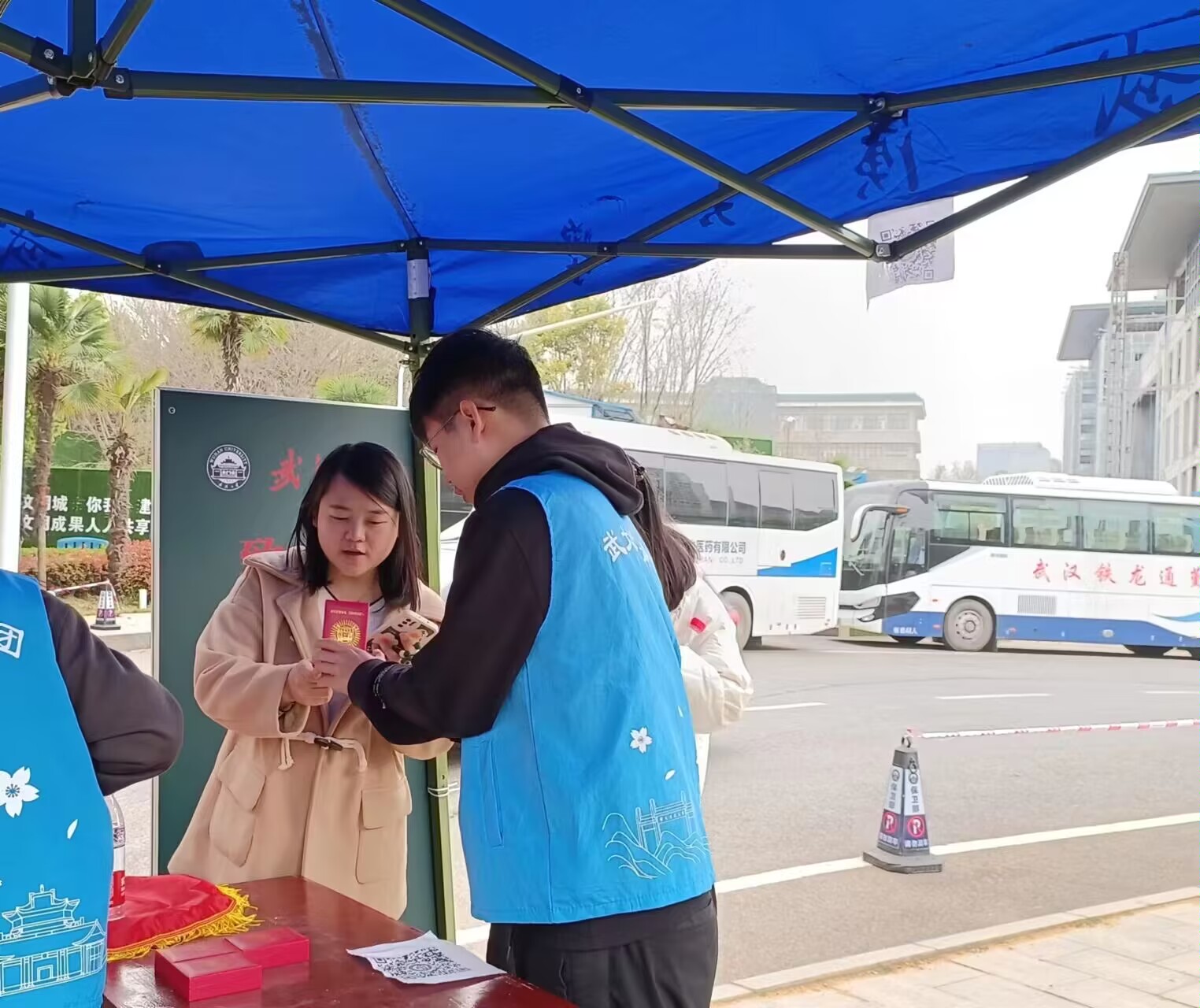 在闸机、在服务点、在路上最红的当然是身穿红马甲的赏樱志愿者啦。探索志愿红,青协在路上,樱花志愿者中有许多动机学子的身影。为近距离了解志愿者的工作,感受志愿精神,动机青协专访了樱花季志愿者詹家杰、张汉柱。