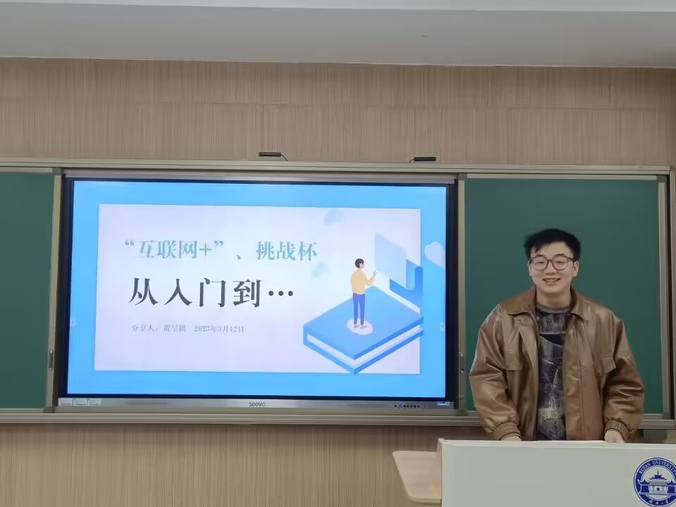 接下来,美女直播 20级辅导员黄呈棋向同学们介绍“互联网+”大赛。黄呈棋首先介绍了大赛的相关政策及具体安排,接着,他从项目来源、项目计划书、路演PPT制作等方面分享了赛事经验,最后讲解了我校对参赛同学提供的全方位支持。