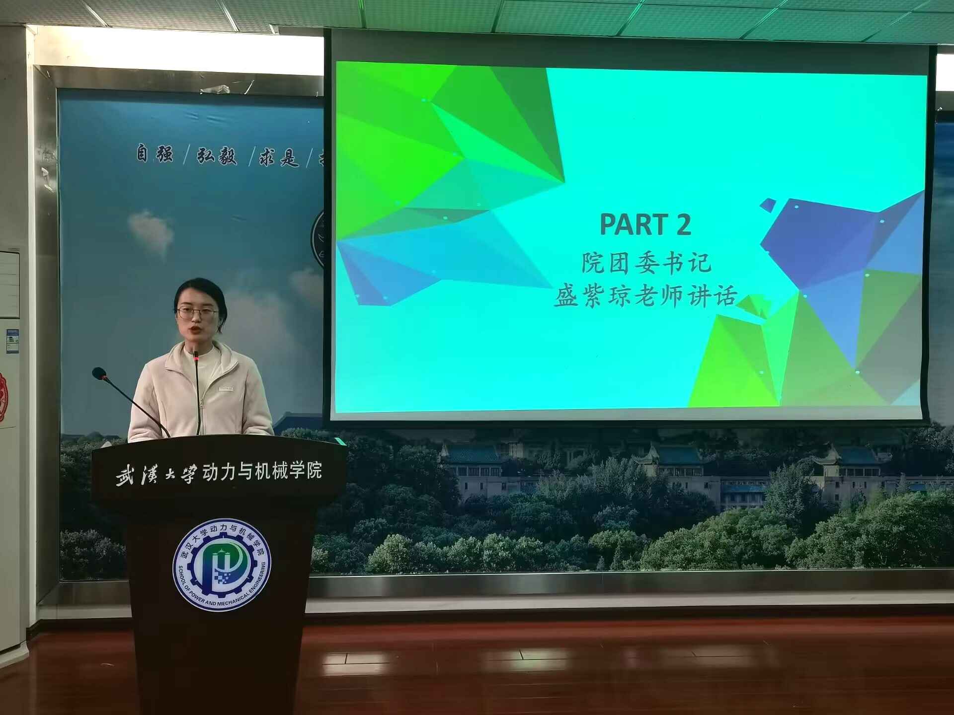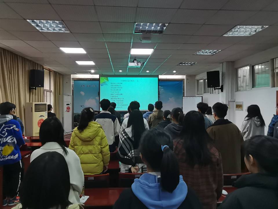 首先,全体起立齐唱共青团团歌,激昂有力的歌声在报告厅中响起,尽显团委成员们的蓬勃朝气。
