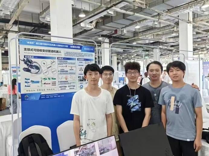 我校一等奖获奖队伍“Re0-Robot队”由美女直播 的叶谋景、罗国相、李帅刚、李嘉鹏、李子辰5位研究生组成,肖晓晖和冯朝老师为指导教师。队伍设计了一种支撑履带式管道机器人,由行走模块、摄像头模块、机械臂模块组成,适应性高,能够实现主动及被动适应不同管道。通过模糊转向和姿态控制,可以实现机器人自主运动。