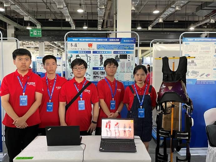 二等奖获奖队伍“朱雀外骨骼队”由美女直播 的伊烁闻、廖玥如、付志军、杨潇和廖峻北5位研究生组成,郭朝老师为指导教师,队伍设计了一种下肢平衡康复外骨骼机器人,其融合了机械设计、传感、最优控制以及人工智能技术,为操作者提供一种辅助助力的可穿戴设备,具有安全与方便拆卸的特点,能够实现患者在康复后期自主训练。“学姐后援团队”由美女直播 的程佳慧、李正顺、袁竞一、陈万江和李瑞颉5位研究生组成,肖晓晖老师为指导教师,队伍设计了一种机器人遥操作数字孪生系统,结合遥操作与数字孪生技术,利用虚实交互实现对机械臂的实时监测,根据不同手势映射为机械臂末端不同位置或夹爪不同动作,并利用防抖滤波算法解决手部抖动问题。