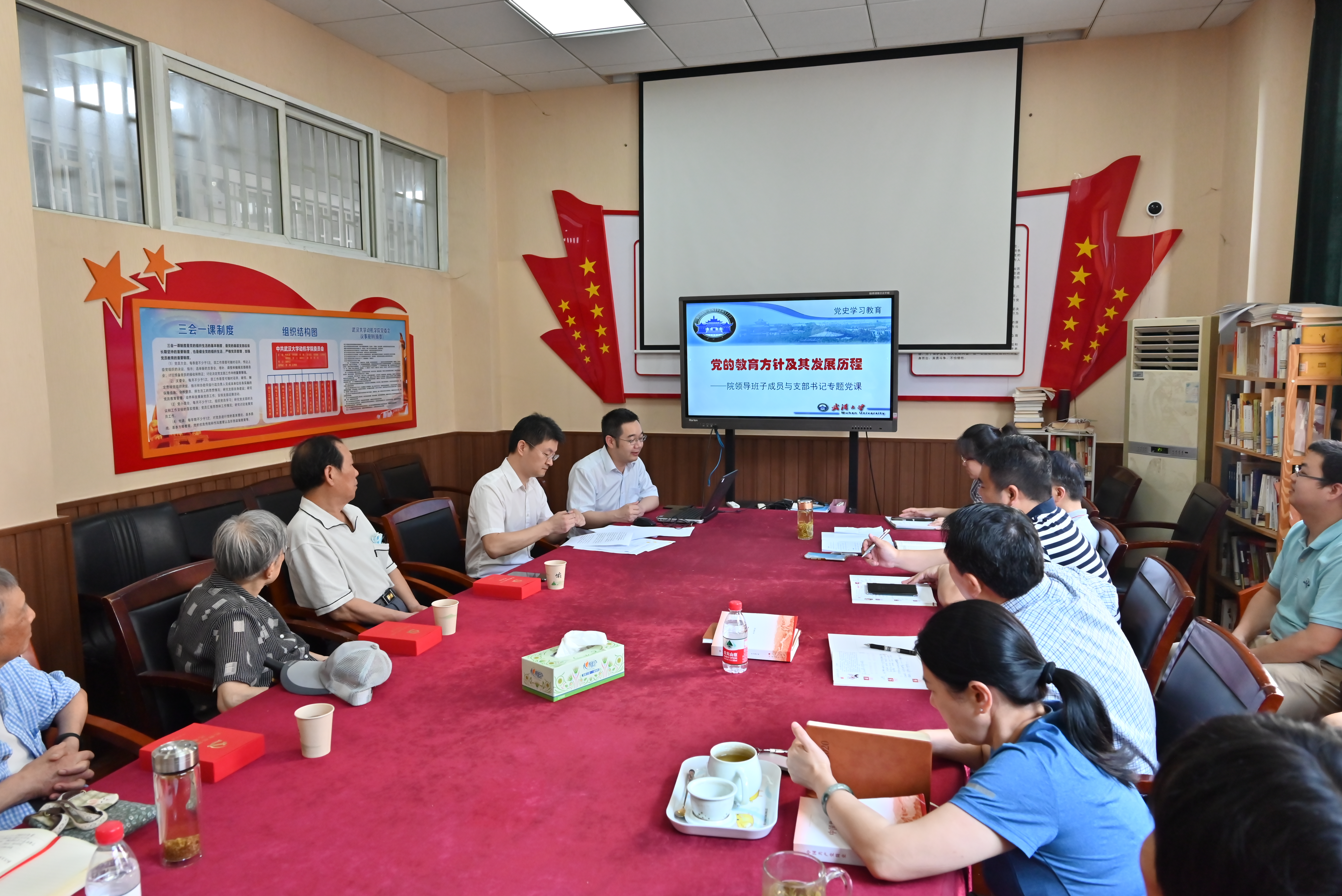 会议组织学习了2021年4月修订的“党的教育方针”,郭新立同志围绕党史学习教育主题,为办公室党支部全体党员讲述了《党的教育方针及其发展历程》专题党课。解读了党的教育方针在各个历史时期的表述,结合习近平总书记关于教育的重要论述,详细阐述了此次《教育法》修订的原则和内容,强调了把劳动教育纳入国家教育方针的重要意义。