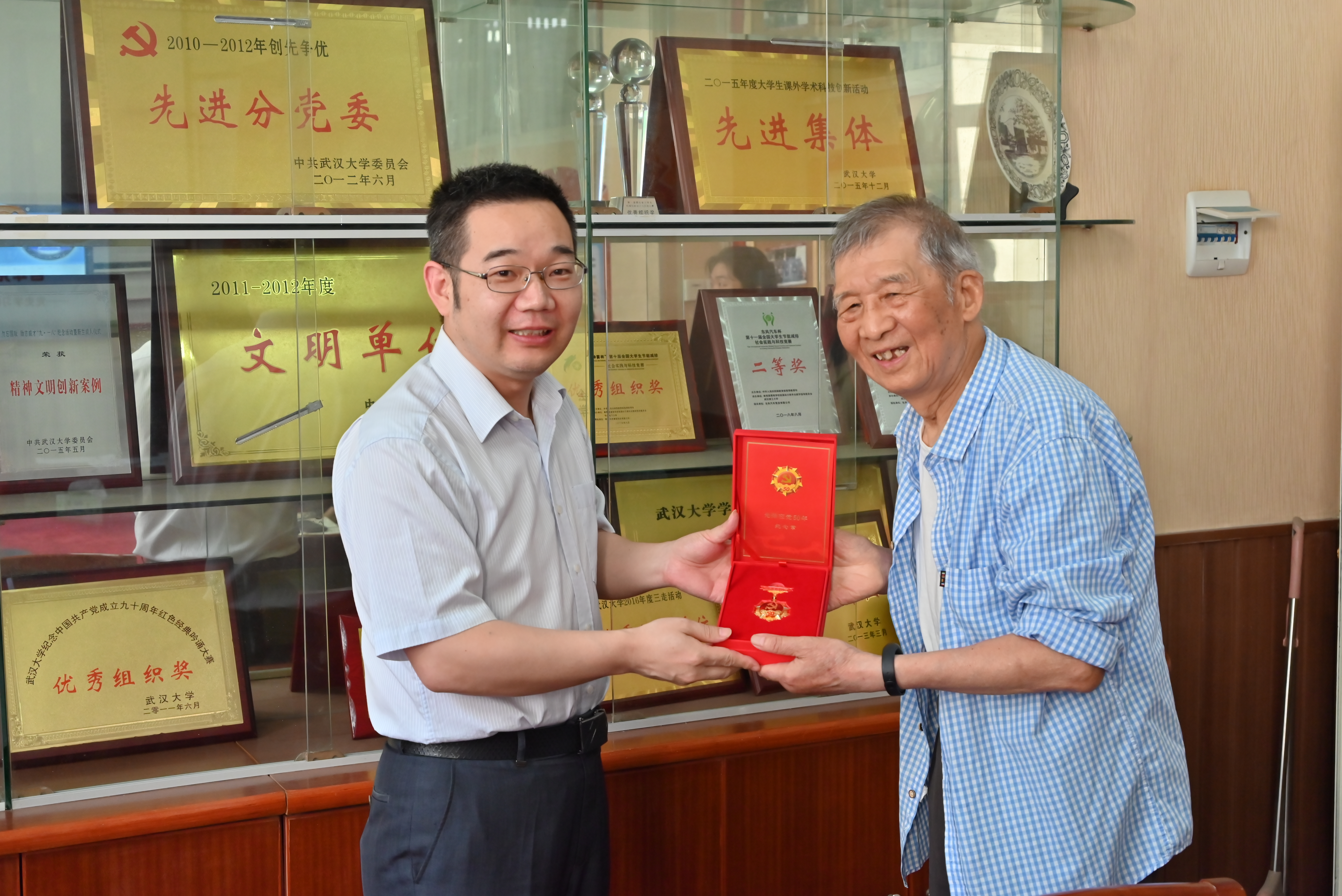 美女直播 党委书记郭新立热烈欢迎了前来参会的三位老党员代表,为他们颁发“光荣在党50年”纪念章并进行了亲切慰问。“纪念章见证了老一辈共产党员艰苦奋斗的峥嵘岁月。”老党员郑同将同志说,“老党员将继续发扬革命传统和优良作风,永远听党话、跟党走,一如既往地为祖国的教育事业发展贡献力量。”