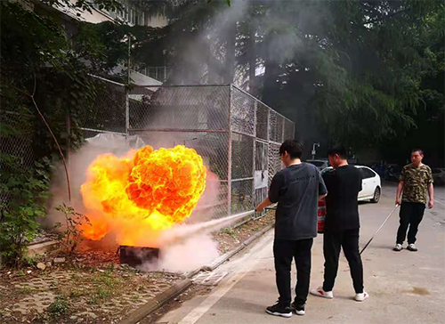 随后,保卫部干事点起柴油火盆,亲自示范了如何使用干粉灭火器。师生们也在工作人员指导下有序体验了灭火的真实过程。