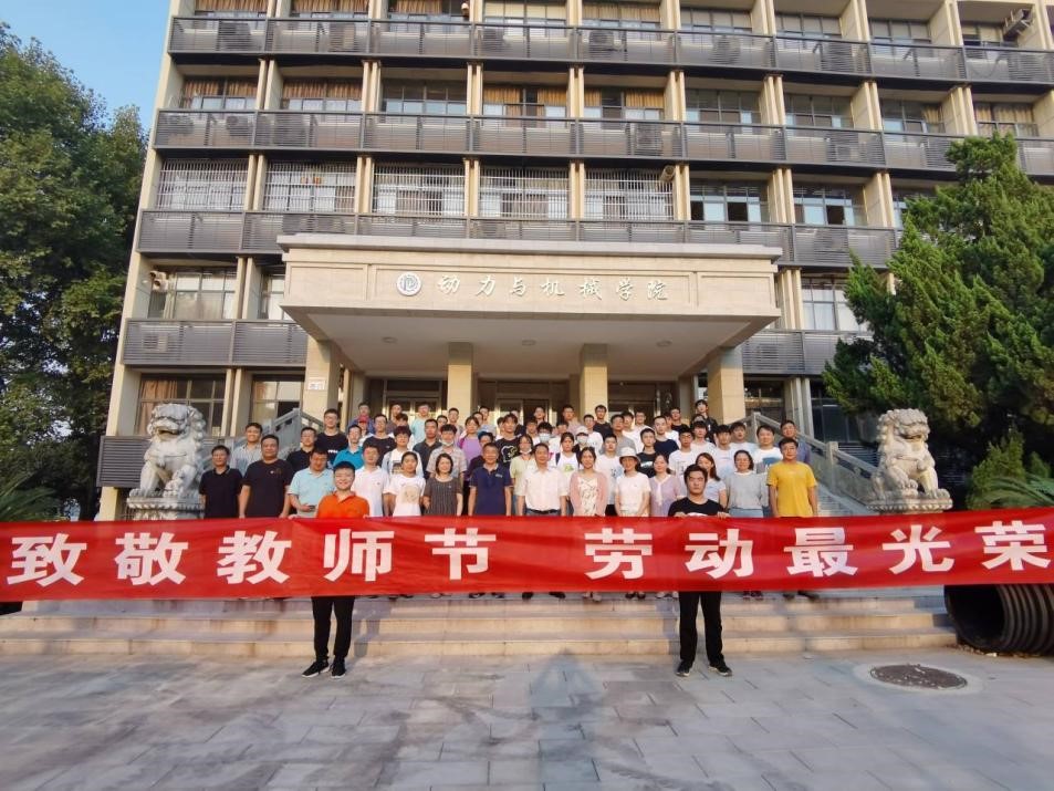最后,全体参加活动的老师和同学们,在九教门口合影留念。老师们,同学们站在九教门口的阶梯上,夕阳照耀着每个参与者的笑容,也照耀着远处的草坪,近处的的道路和脚下的阶梯,因为每一寸土地都有大家劳动的身影。