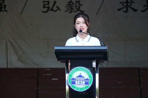新生代表、2021级工科试验班16班的高莎·阿那尔别克同学也分享了自己初识武大的美好经历,她以“让我们告别盛夏的流火,应承金秋的丰硕用青春诠释曾经的誓言,用汗水创造明日的辉煌”倡议同学们不负当下,奋发向上、认真学习,为学校增光添彩。