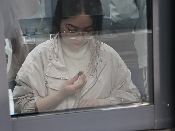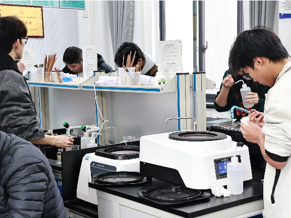 本届赛事延续金相试样制备的全流程考核模式:参赛选手需在40分钟内完成对20钢试样的制备。从倒角、预磨到抛光,再到腐蚀和显微组织观察,每一步操作都考验着选手的耐心与技艺。选手们手持试样在显微镜下凝神观察的专注身影,恰是武大学子追求卓越的真实写照。