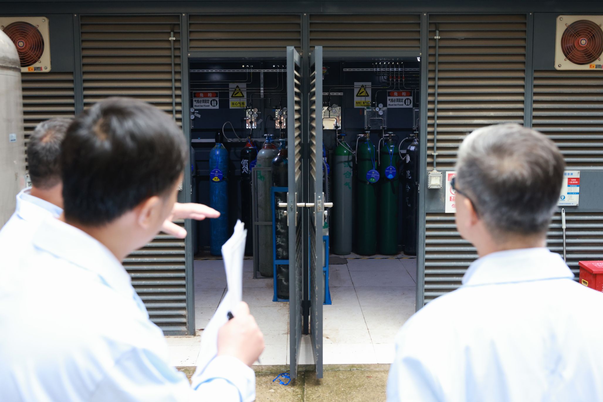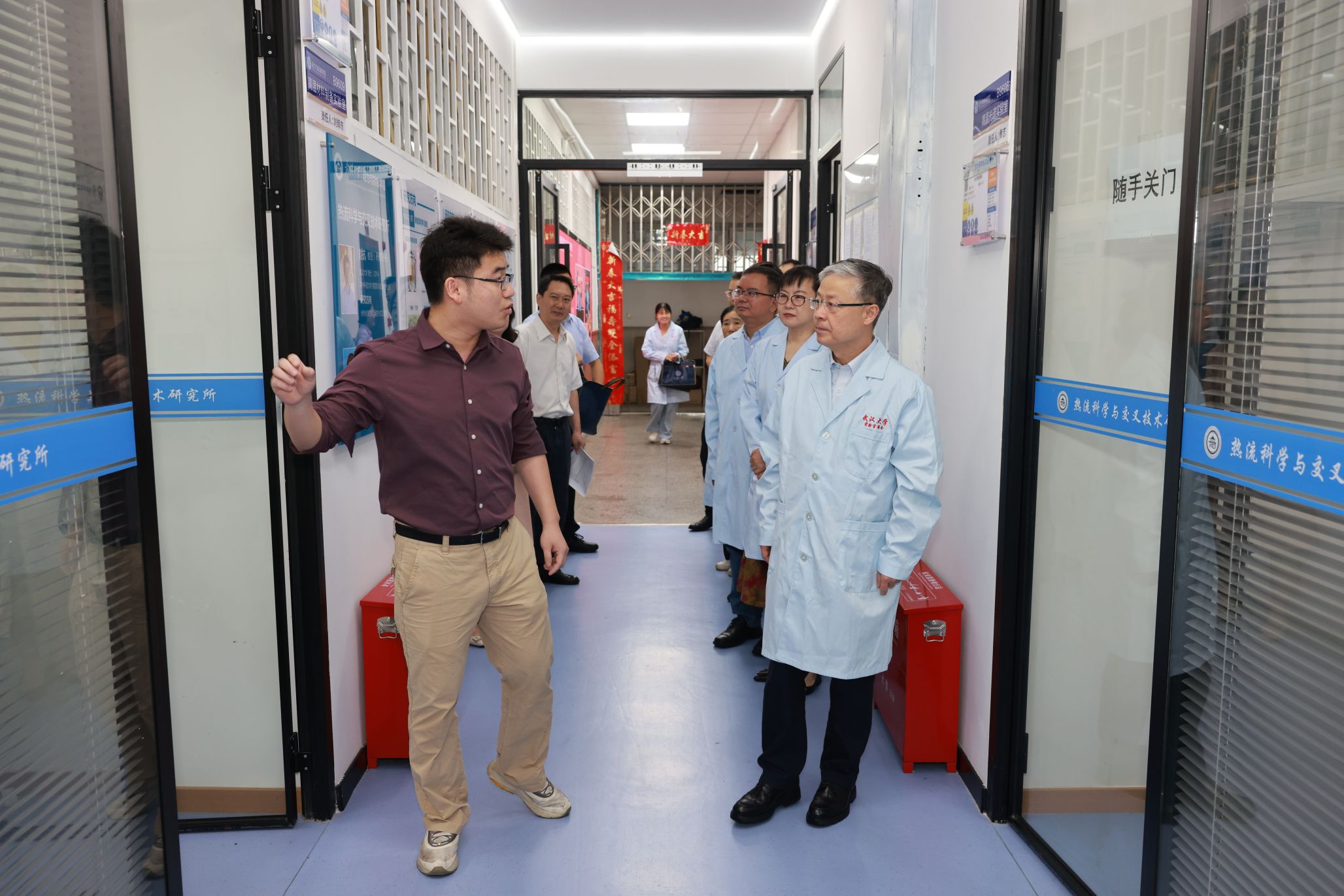 此次检查聚焦危化品管理、特种设备运行、气瓶规范使用及实验操作流程等核心环节,从热流科学与交叉技术实验室到低碳能源转化实验室,检查组逐一检查安全制度上墙情况、危化品存放情况、气瓶钢瓶固定装置等,现场询问实验室负责人应急处理流程。
