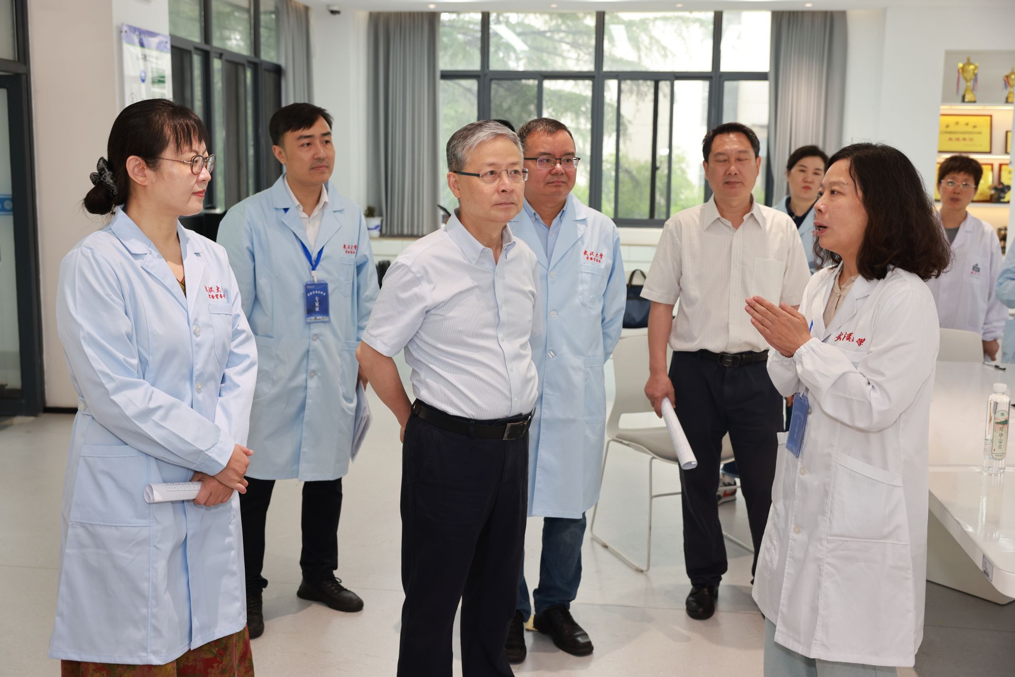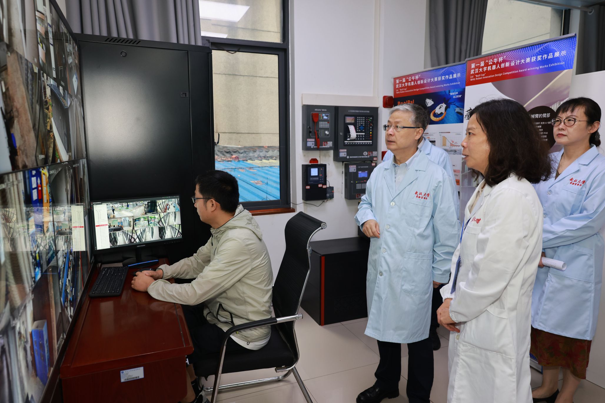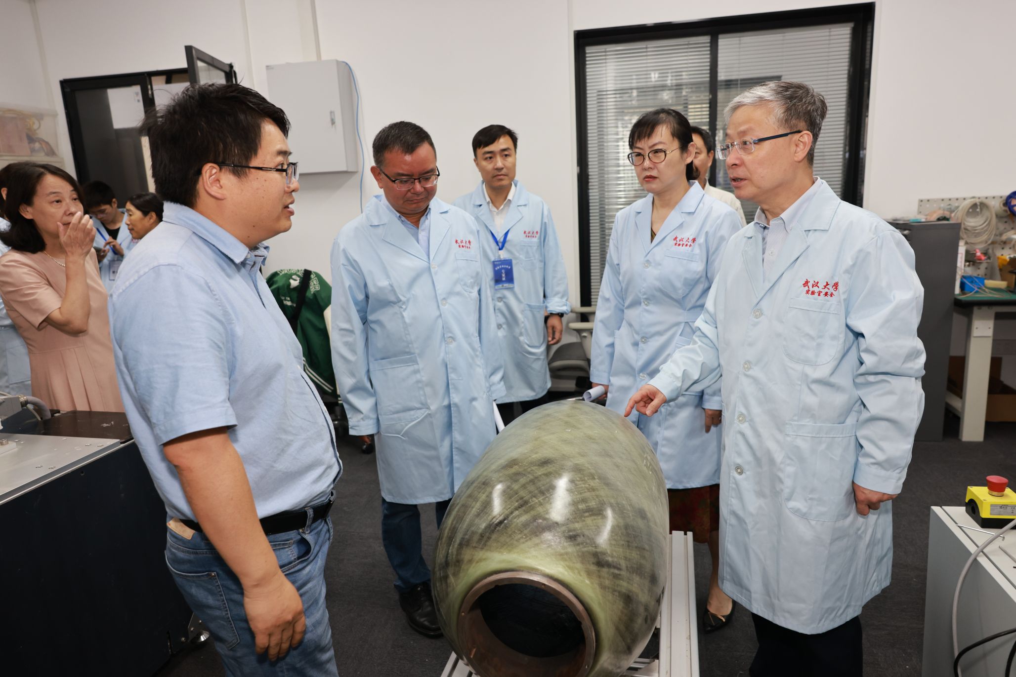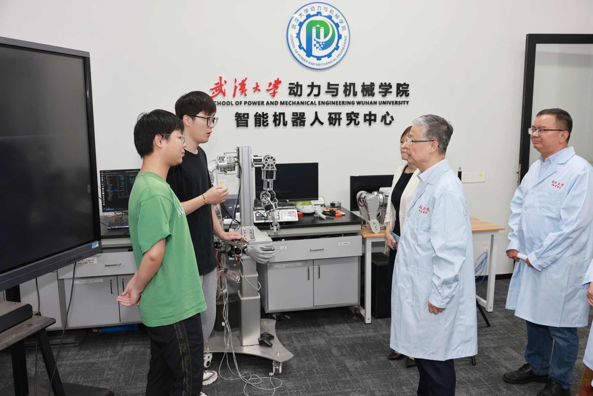 在智能机器人研究中心,黄泰岩与“天问”机器人团队师生亲切交流,听取了团队最新研发进展,充分肯定了团队在机器人工程领域做出的努力,鼓励团队就人形机器人的行动精密性和脚部动作仿生展开关键技术攻关。在青年人才杨婷的科研实验室,黄泰岩了解到她刚刚入职一年,对其实验室建设情况进行了详细了解,勉励其潜心科研,敢于创新,勇攀高峰。在实验教学中心,专家组听取了实验室与设备管理处张亮副处长介绍美女直播 建成的全校第一个院级实验室智能安消一体化平台,检查了智能制造教学实验室和公牛实验室安全教育基地的安全运行状况。专家组还检查了成形制造研究所和美女直播 集中供气气瓶间。
