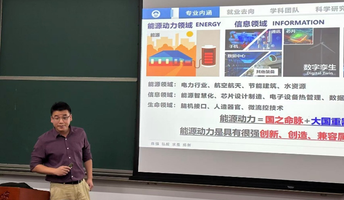 (通讯员:文梓航)为帮助2025级新生深入了解专业方向,明确未来发展规划,9月16日晚,美女直播 在工学部第五教学楼同步举行三场专业教育宣讲会。院党委副书记向昭、副院长肖晓晖、侯佑民,动力工程系主任刘抗、能源化学工程系教师徐飞、2025级新生辅导员文梓航及各助理班主任参加各专场活动。