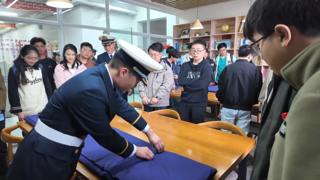 军校严谨务实的作风、昂扬向上的文化氛围令武大师生印象深刻。从整齐划一的队列操演到军乐队激昂雄壮的演奏,从学员宿舍内务整理的精细规范到训练场上挥洒汗水的身影,无不体现着人民军队“纪律严明、作风过硬、意志坚定”的优良传统。同学们亲手体验叠制“豆腐块”军被,在细微之处体悟军人日常的自律坚守与意志锤炼。