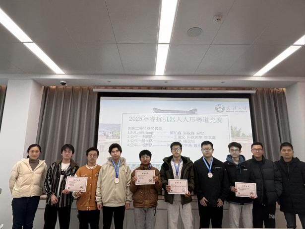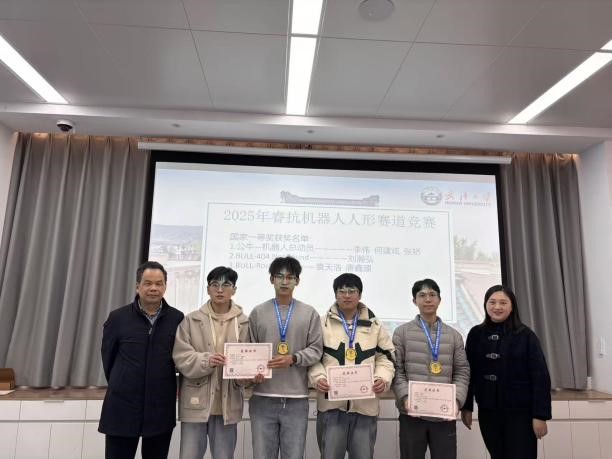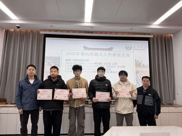会议在赛事回顾视频中拉开序幕,镜头再现了队员们赛前调试、赛场攻坚、协作拼搏的杭州参赛之旅,凝聚汗水与热爱,引发全场共鸣。在颁奖环节中,向昭、巫世晶等多位老师依次为同学们颁奖。此次竞赛成果丰硕:公牛—机器人总动员队等3支队伍斩获国家一等奖,BULL-Silk Song 队等4支队伍荣获国家二等奖,公牛官方正品队等5支队伍拿下省级三等奖。沉甸甸的荣誉证书与奖牌,是对队员们技术实力与拼搏精神的充分肯定。