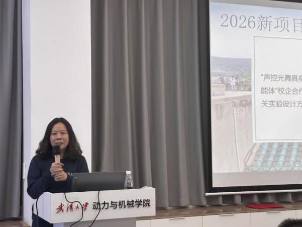 指导老师代表翟显汇报了机器人购置、耗材维修等比赛支出明细,确保经费公开透明,回顾了同学们赛前打磨结构、优化算法等备战点滴。新指导老师精彩亮相:机械系彭庆教授分享跨尺度计算模拟研究及成果,实验中心葛东升老师分享了航空航天机器人技术与国际赛事夺冠经验。现场发布了2026年两大新项目,葛东升负责的“智能制造通关实验室”与廖冬梅领衔的“声控光舞具身智能体”项目,为学生提供从理论到实践的全方位创新能力培养平台。