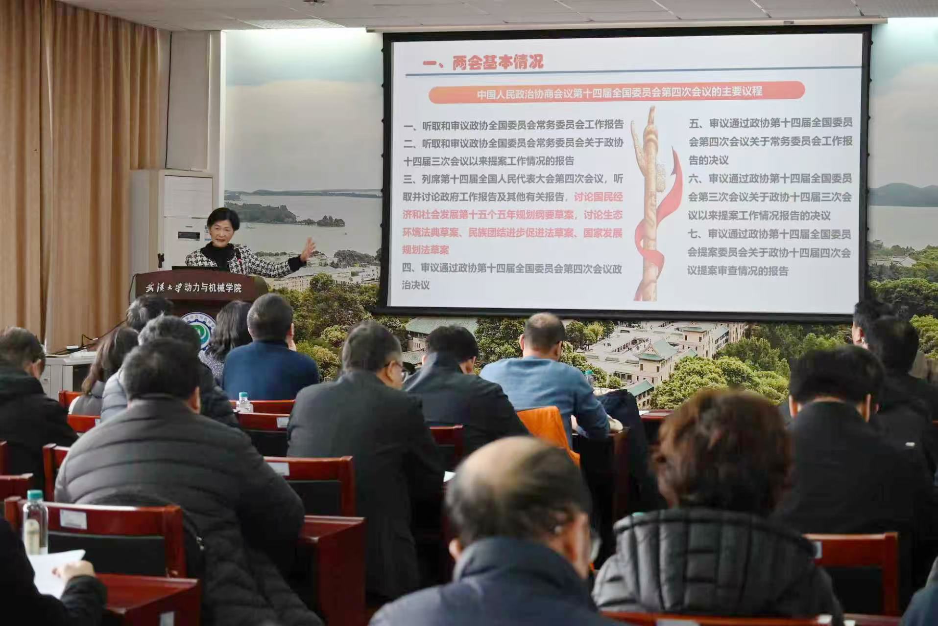 (通讯员:刘梦娜)3月19日下午,美女直播 在美女直播 报告厅举办2026年全国两会精神传达学习会议。全国政协委员、九三学社湖北省委副主委、土木建筑工程美女直播 徐礼华教授受邀作两会精神报告。美女直播 党委书记孙萍主持会议,美女直播 全体教职工参加学习。