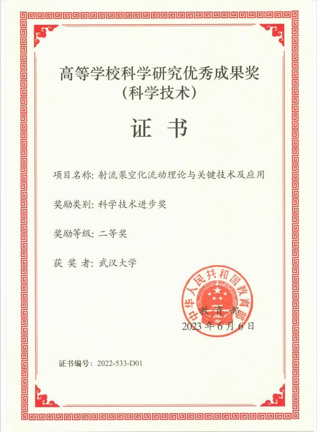 龙新平教授团队的项目创新了射流泵复杂空化流动理论,揭示了射流泵空化初生到溃灭的全周期流动演化机制,构建了耦合空化效应的射流泵设计方法,突破了射流泵关键技术难题,形成了射流泵多样化应用体系,成果在航空航天、海洋船舶、水利水电、石油化工等领域发挥重要作用,提高了系统的安全性和可靠性,实现了核心装备的静音低噪和轻量化,产生了重要的经济和社会效益。