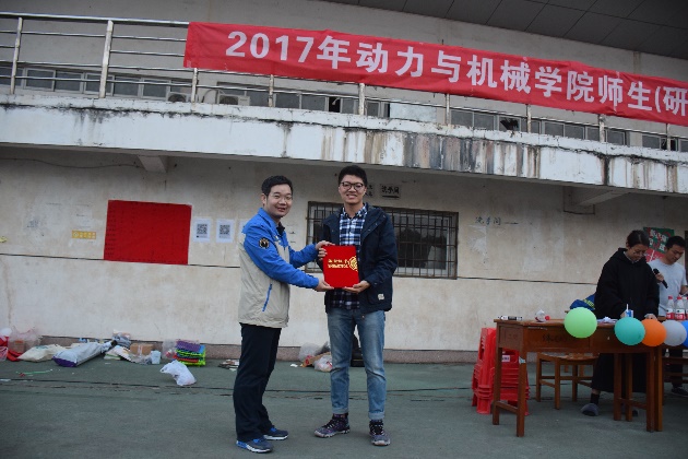 17级硕士研究生2班在一个多月的体育活动中,表现出色,总分第一,荣获体育文化节总冠军,郭新立书记为其颁发了奖状。
