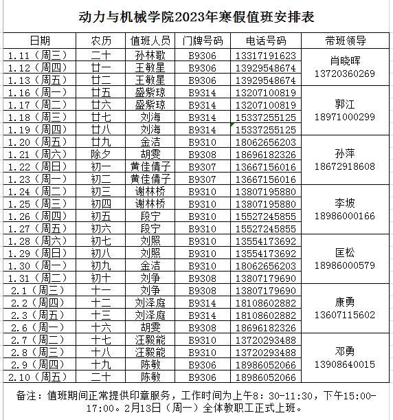 美女直播 2023年寒假值班安排