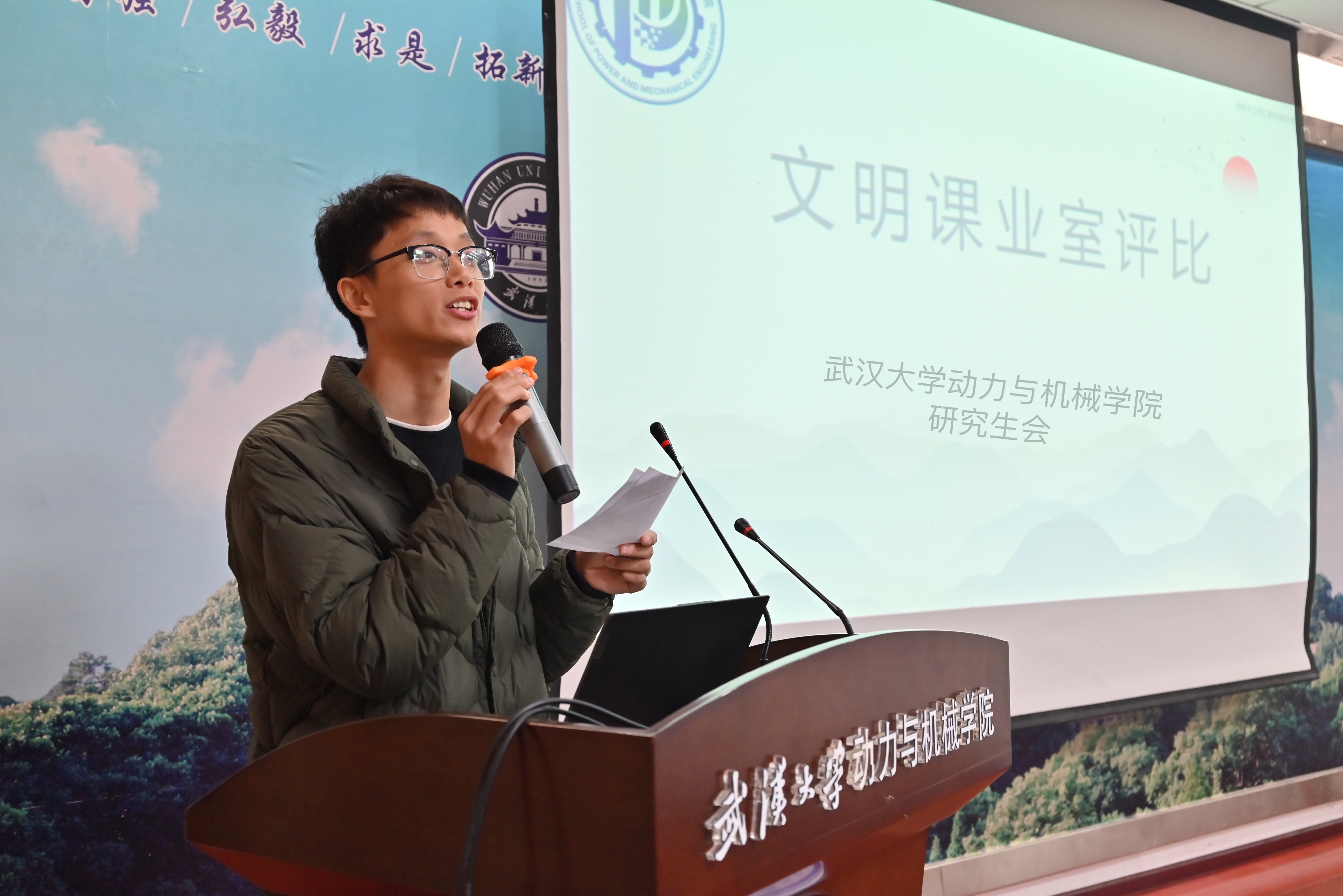 此次文明研究生课业室评比活动由安全权益部主办,在前期历时数周的线上初评、线下复评后,选取了得分较高的9个课业室进入了最终评比环节。