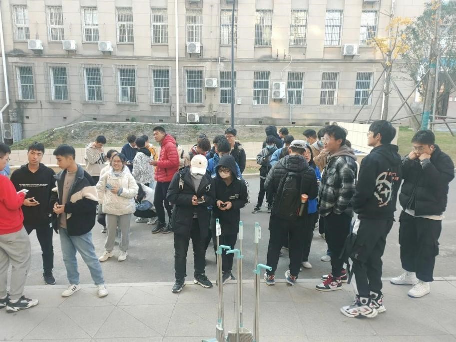 (志愿者在九教门口集合,完成线下签到工作)