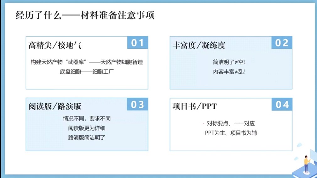 大会第三项,由杨鸿飞学长从本科生参赛的角度分享参赛的经验。杨学长主要通过项目团队,项目执行,项目提交三方面向同学们讲解了参赛的思路以及要点。接着杨学长邀请到了他之前参赛的队友谢逸凡学长和陈子妍学姐来分享自己的参赛经验,让同学们更加全面地了解不同项目在准备比赛时的过程和特点。通过几位学长学姐的分享,同学们也了解到虽然备赛过程比较艰辛,但其中的收获与成长是无与伦比的。