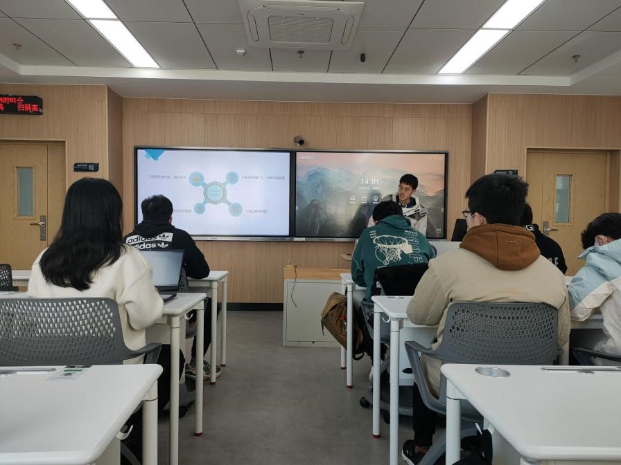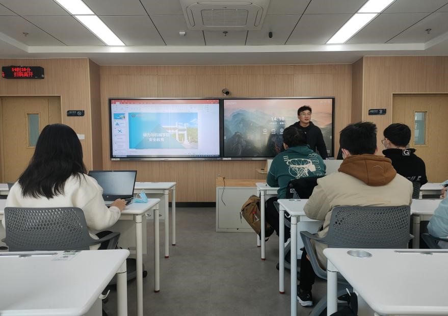 下午两点,班会准时开始,班长储镇峰从人身安全、财产安全、交通安全、消防安全等几个方面提醒大家提高警惕。尤其是财产安全,要做好寝室防盗措施,离开寝室关紧门窗,不在寝室留外人;另外,电信诈骗频发,他提醒同学们要警惕诈骗信息,辨析真伪。