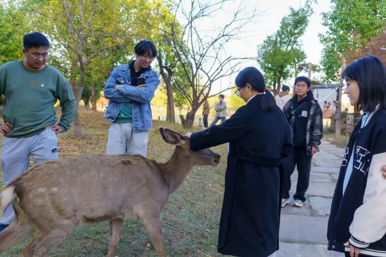 随后,党员来到村内的生态养殖园区。园区内,香猪、孔雀、鸵鸟、梅花鹿等动物在自然的环境中悠然自得,形成了一幅充满生机的乡村画卷。学生们在园区负责人陪同下参观动物养殖区,了解动物的饲养方式和生态养殖技术。