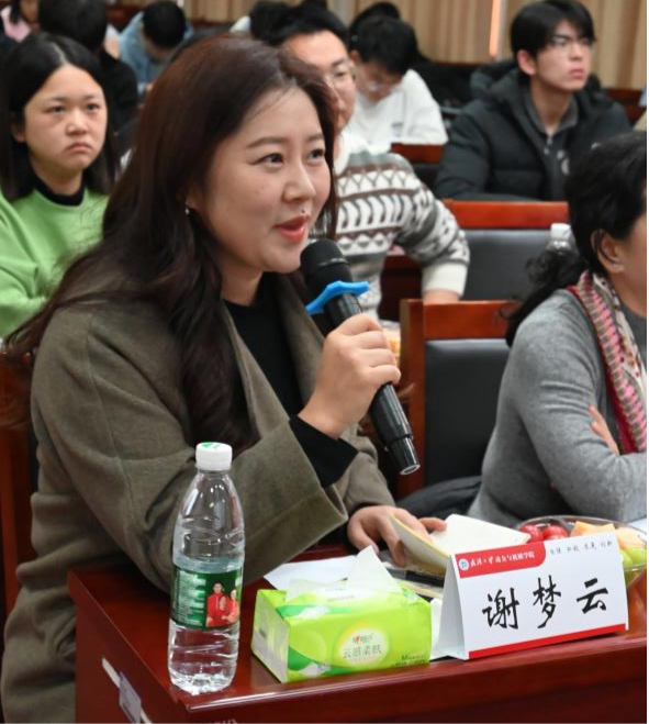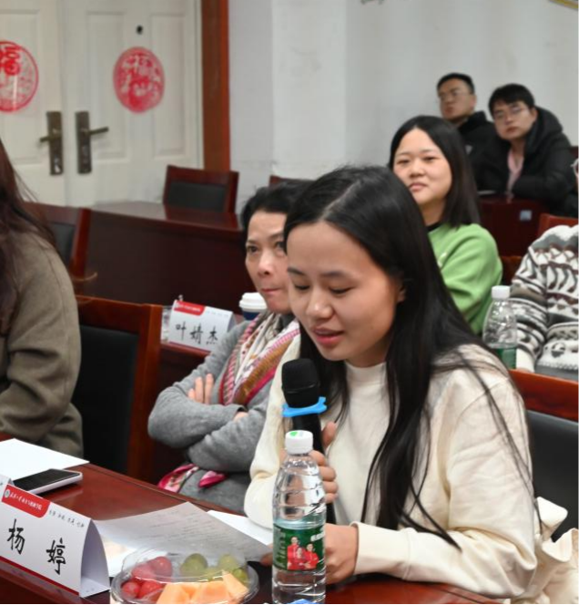 杨婷与谢梦云两位老师分别对两位博士生的汇报内容进行点评。杨婷从专业的视角出发,对每项研究的方法论和实际应用提出了富有建设性的意见和改进建议,对研究中的亮点和创新点给予了充分的肯定和赞赏。谢梦云分享了自己在跨学科领域研究学习的经验,对两位博士生提出了更高的期许。