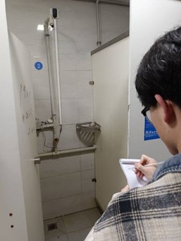 翌日,各位团员参与了本次团日活动的室外部分:“学习雷锋做好事”社会实践活动,活动内容为向雷锋学习,做一件好事并进行记录。其中第17团支部成员发现宿舍楼中部分公共设施损坏,给同学们带来不便,却无人报修,于是便走访记录了四舍楼中损坏的设施并上报学校进行维修。