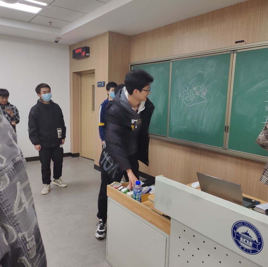 为了进一步调动团员们的积极性,使这些事迹更加深入人心,各位叙述人在每一个小故事之后设置了一个题目,内容是从几幅图片中选出与本故事相对应的图片,由各团员进行抢答。这些题目难度适中而轻松有趣,激起了团员们的兴趣。特别是刘鎏果所设置的题目,每幅图片中都暗藏着故事中的小细节,让各位团员印象深刻,同时也让他们对蕴含在这些细节中的雷锋精神有了更深的感悟。