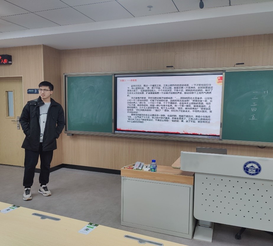 活动第二项,由团员代表哈力格.那木德克、李有焐、钟孟桀、刘鎏果分别分享自己搜集到的雷锋事迹。在李有焐等人声情并茂的叙述中,我们身临其境地感受到了雷锋当年帮助同志们的热情,还有他不怕吃苦、以集体利益为上的可贵品质。