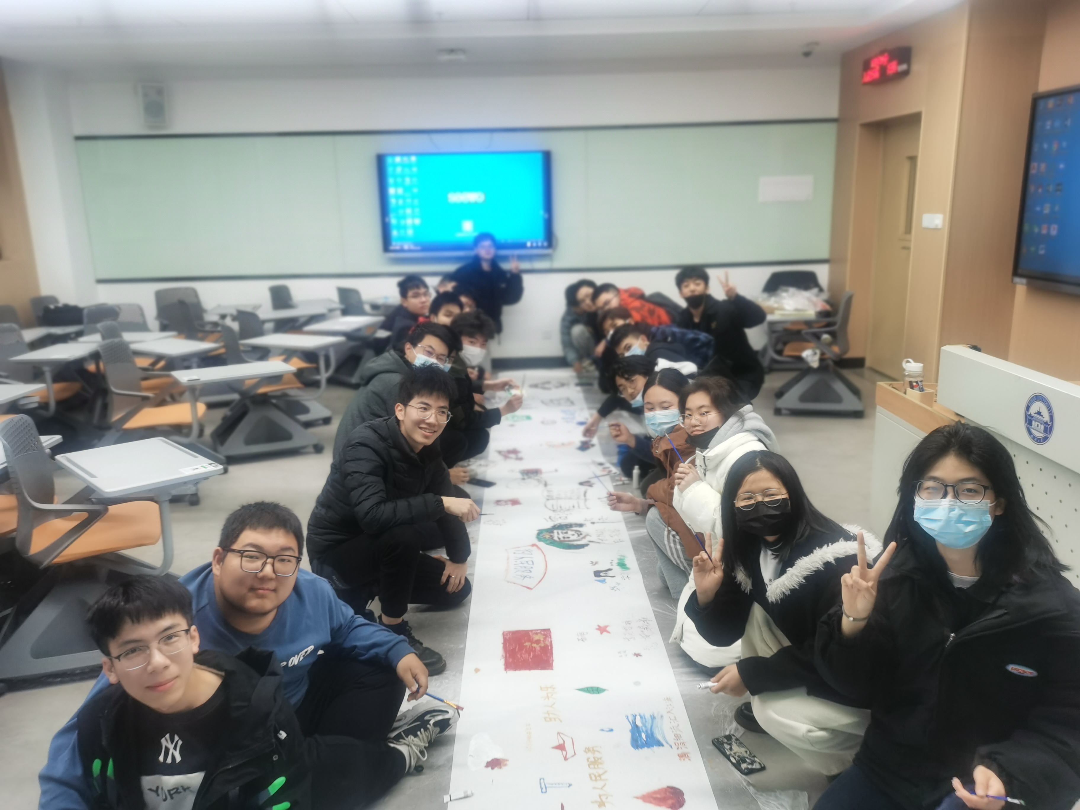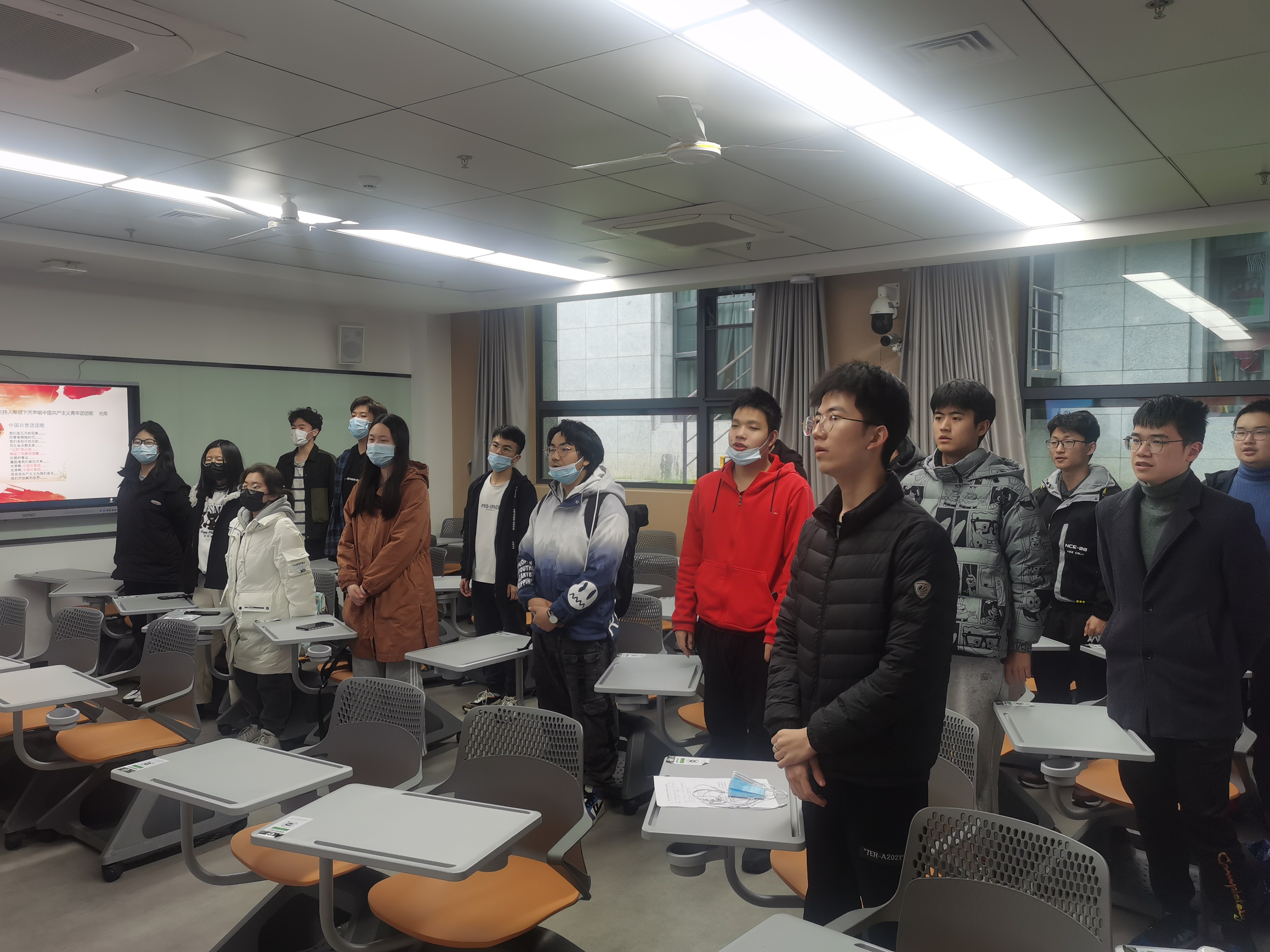 本次团日活动于2022年3月21日下午14:30于工学部A教学楼218举行,活动开始,团支书首先带领大家齐唱共青团团歌。“我们是五月的花海,用青春拥抱未来……”嘹亮悦耳的歌声回响在整个教室。