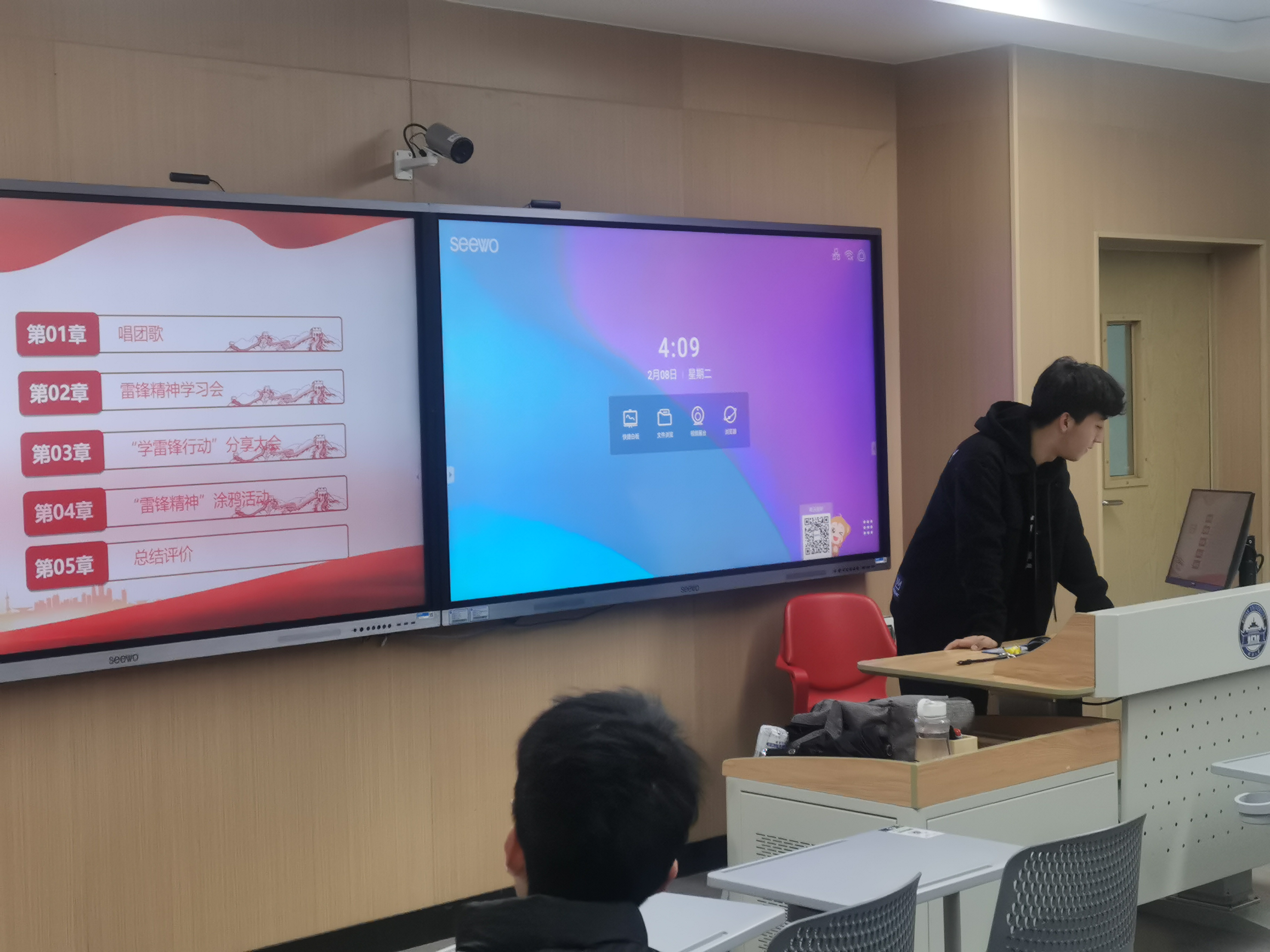 为了加深我们对雷锋精神的理解,刘今奇播放了《学习雷锋精神》的剪辑视频,该视频以时间为线,生动的讲述了多个雷锋做好事的例子,以及他所说过的一些话,如:“人的生命是有限的,可是,为人民服务是无限的,我要把有限的生命奉献到无限的为人民服务中去”,令人动容。