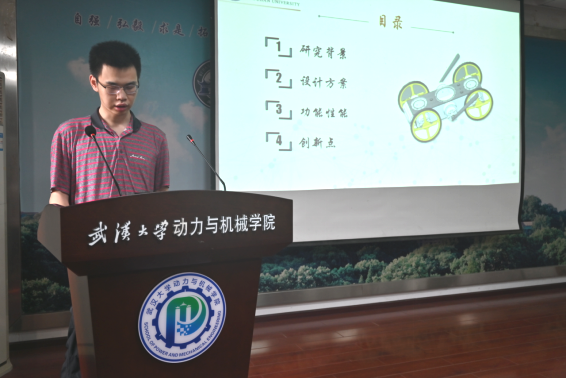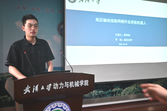 会上各位参赛队伍依次对作品进行了精彩的展示。首先是美女直播 的飞行者队(队长:周书杰)展示了一种用于对高压输电线路自主巡检的多旋翼无人机,其能够实现充电站自主起降以及导线识别与自主落线,利用图像识别分析线路中零件的损耗情况。