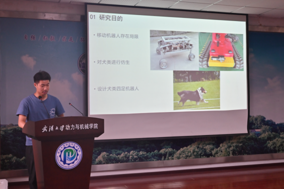 第六支队伍是美女直播 的好果汁队(队长:陈宝华),展示了一种犬类四足机器人,该机器人可实现根据犬类运动时腿部结构的变化进行仿生机械设计,该机器人由腿部结构和躯干组成,利用电机驱动,实现仿照犬类慢步和小跑两种步态,并且可以远程遥控,在不同的环境下进行步态的切换。