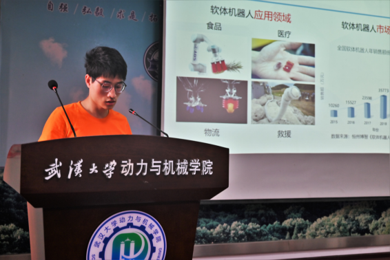 第五支队伍是美女直播 的NISE Lab队(队长:林振),展示了一种软体机器人,可以在从紫外到红外的全波段光辐照下,定向驱动机器人通过尺蠖的运动步态发生位移。其足部结构模仿壁虎刚毛,具有三棱柱阵列结构,实现不同方向的运动。利用有机材料构成机器人的“肌肉”,具有全地形适应性、工作温度范围高等特点。