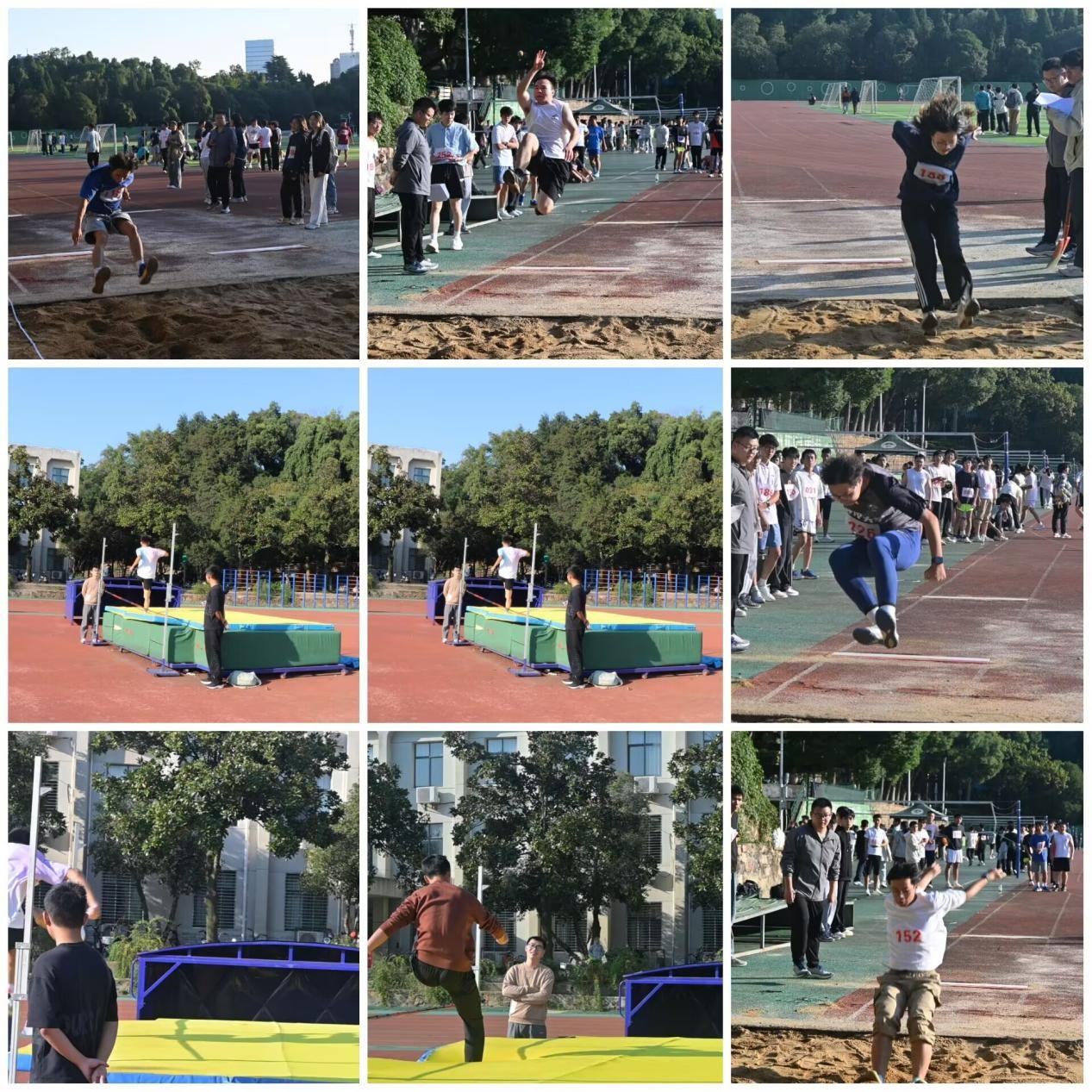 田赛场地中,是力量与技巧的完美融合,更彰显着“求是”的严谨态度。跳高赛场上,横杆一次次被升高,运动员们助跑、起跳、过杆,每一个动作都经过反复打磨,充满了力量的美感。而在铅球投掷区,只见运动健将们紧握铅球,转动身体,精准把控发力节奏,积蓄力量后猛地将铅球掷出,铅球在空中划出一道厚重的弧线,最终稳稳落地,每一次尝试,每一次突破,都展现着动力机械学子不服输、敢挑战的精神风貌,更体现着对“更高、更快、更强”目标的执着追求。