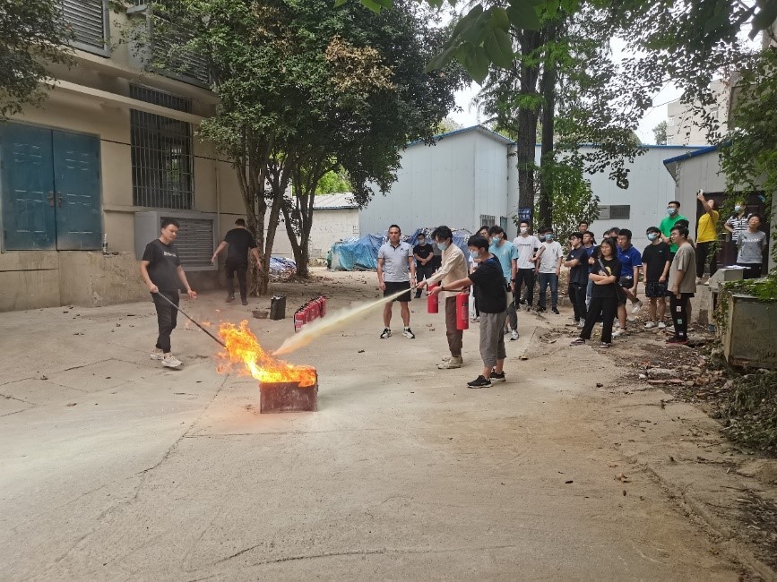 首先进行了消防知识培训。保卫部老师围绕消防器材的辨认和使用、灭火的方法和注意事项、火险隐患和应急自救常识等方面进行了详细讲解,具有较高的实用性和可操作性。而后,大家两两一组,进行了干粉灭火器实践演练。