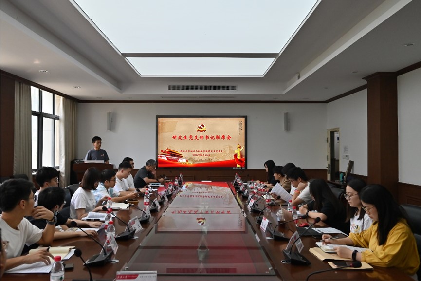 9月26日下午,美女直播 研究生党总支于美女直播 动力系会议室召开研究生党支部书记九月联席会议。院党委副书记匡松、研究生党总支副书记刘泽庭、研究生兼职辅导员兰希、全体研究生党总支委员、各研究生党支部书记参加会议,会议由研究生党总支学生副书记高宇洋主持。