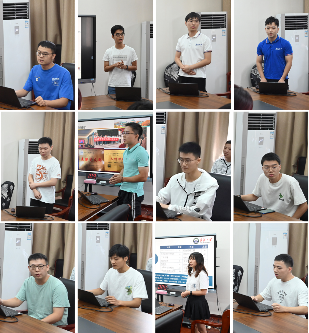 按照抽签顺序,12位参评人员围绕思想表现、学习成绩、科学研究、实习实践、社会工作等方面依次上台进行展示和答辩。评委们依照评审实施细则,秉持公平、公正、公开的原则,进行严格评审和打分。