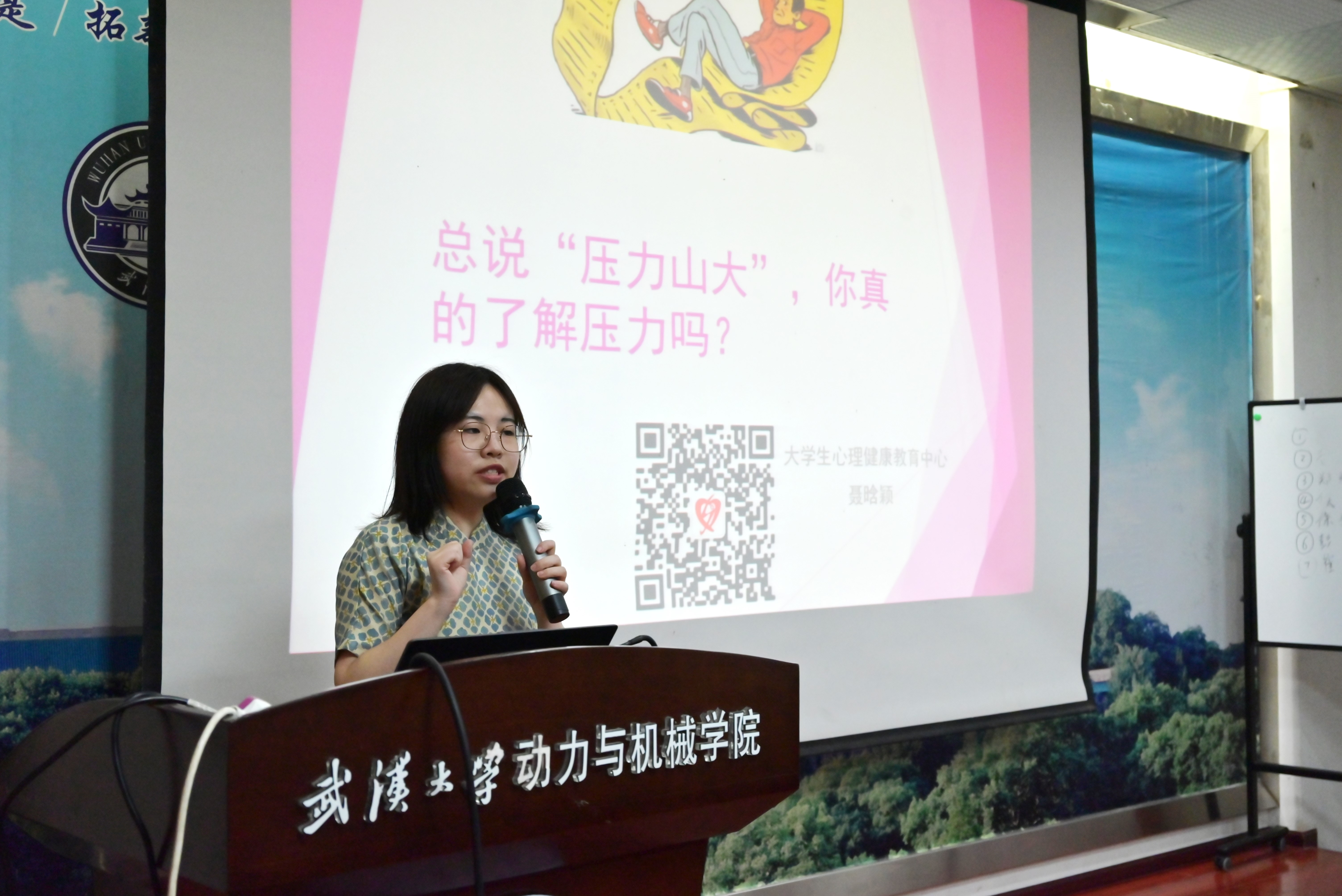 会议开始,聂晗颖进行以“如何认识与化解压力”为主题的心理健康教育讲座。聂晗颖对于压力产生的来源、如何认识压力等方面进行了介绍,重点针对如何化解自身压力提供了一些具体措施。她在最后向同学们介绍了美女直播 大学生心理健康教育中心,希望同学们能够积极的认识压力,化压力为动力,遇到心理问题可以及时向中心寻求帮助。