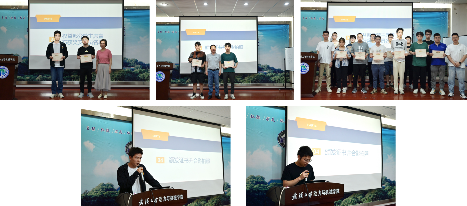大会第三项,邓勇、廖冬梅、刘泽庭、周迪一分别为获评2022-2023学年度“实验室安全先进个人”“安全员标兵”“优秀安全员”的研究生进行表彰并颁发荣誉证书。获评“安全员标兵”的孙文昊和黄勇同学进行了发言,他们表示会始终牢记安全员责任,服务好实验室同学,发挥安全员标兵的先锋作用,守护好实验室的安全。