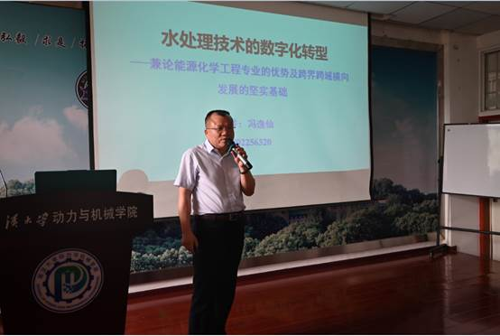 冯逸仙高工是美女直播 (原武汉水利电力美女直播 )电厂化学专业本科毕业,中国海洋学会海水淡化与水再利用分会理事会理事,长期从事水处理方面的研究,他给同学们分享了水处理技术的数字化转型的报告。