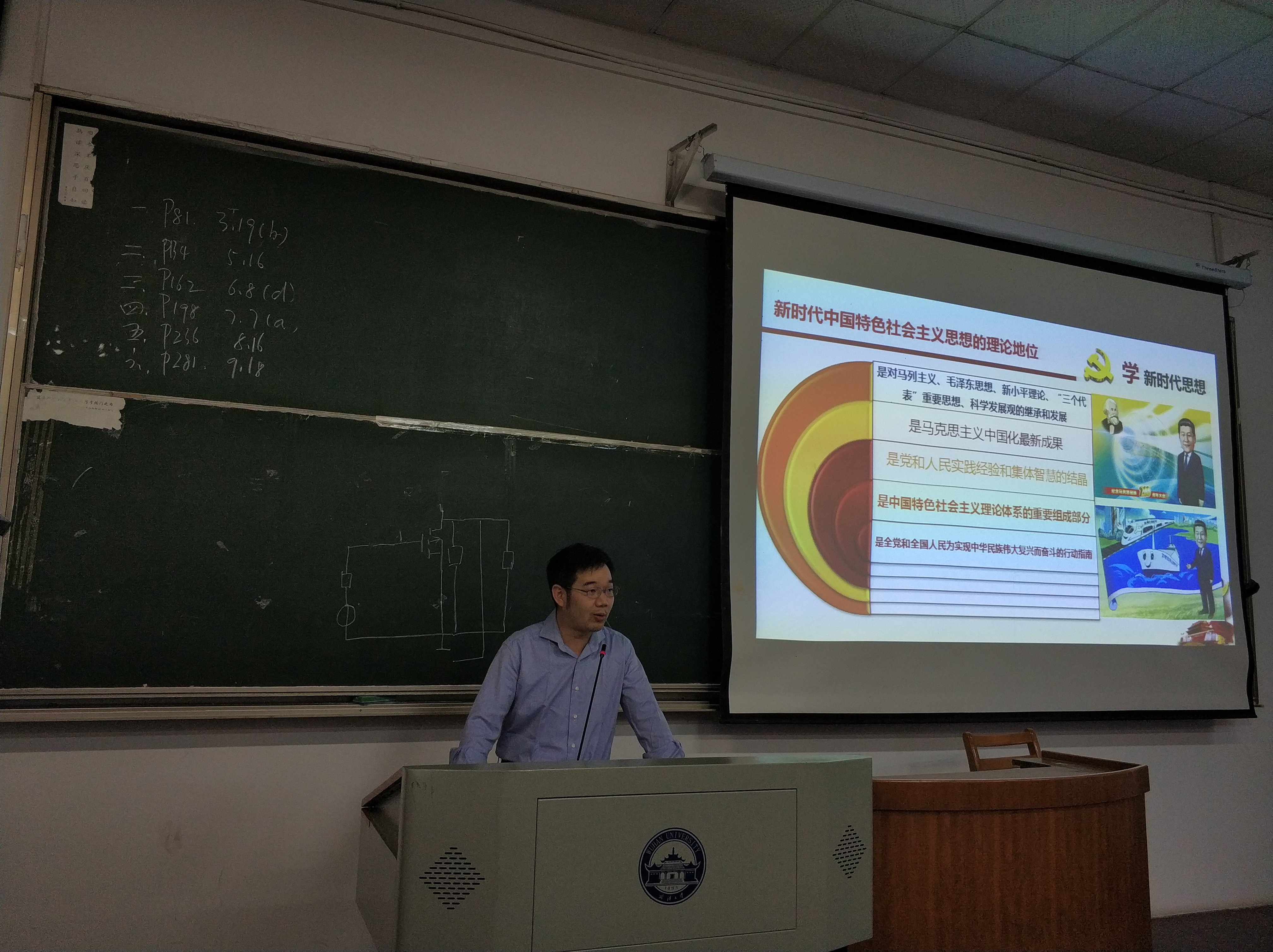 【通讯员:龚政】10月28日下午,在5教103教室,美女直播 党委书记郭新立为美女直播 全体学生党员及发展对象讲关于《习近平新时代中国特色社会主义思想》的专题党课。学工办主任谢林桥主持党课。