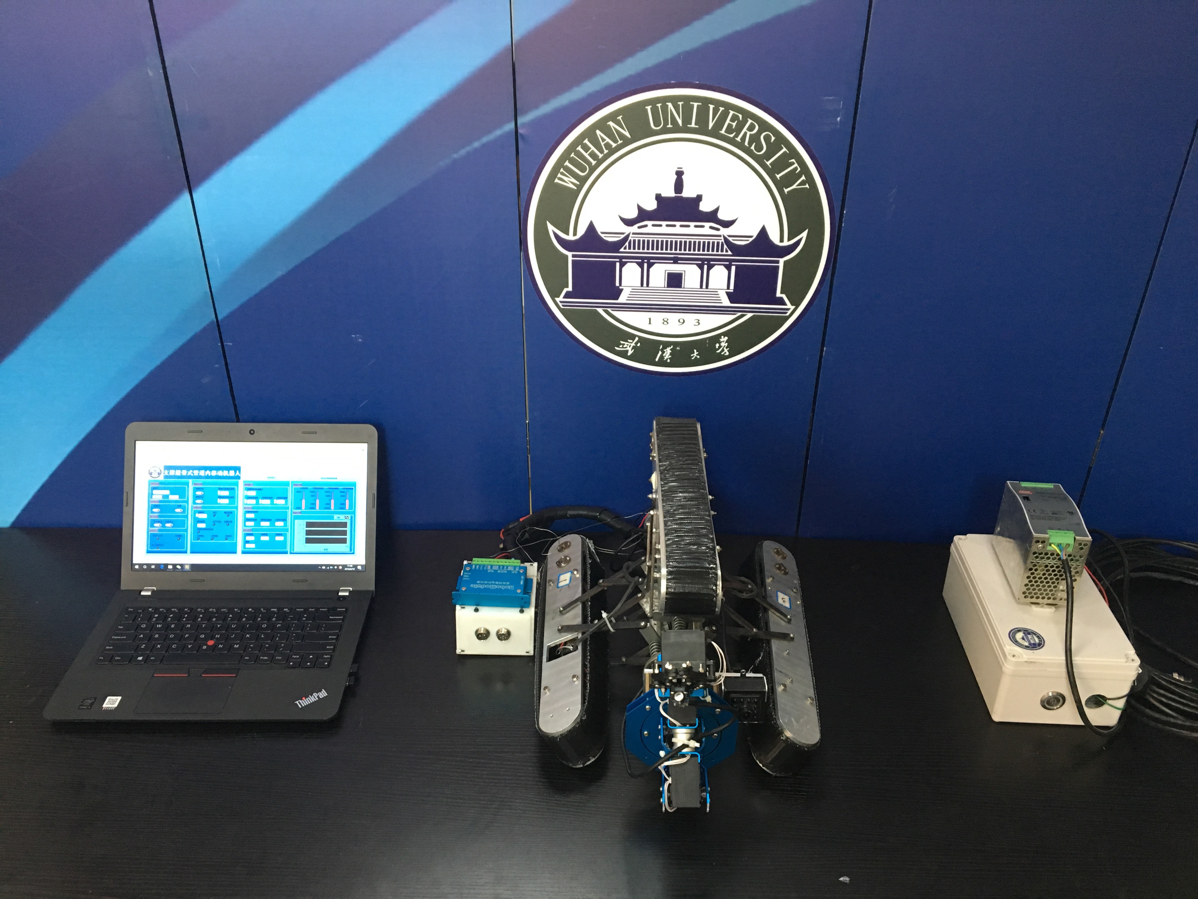 WHU-IPR队(队伍成员:吴志鹏、何思宇、孙定阳、唐律、邵浩东)在经过校内选拔赛与华中分赛区比赛后,成功入围全国总决赛并获得佳绩。他们的作品“防异物检测管道机器人”是针对工业管道维护检修作业所研制的一种特种机器人,功能为:1.完成管道内运动,可通过各种类型的管内障碍;2.管道内防异物作业,通过携带的摄像头及小型机械臂可完成对管内异物的识别和清除。